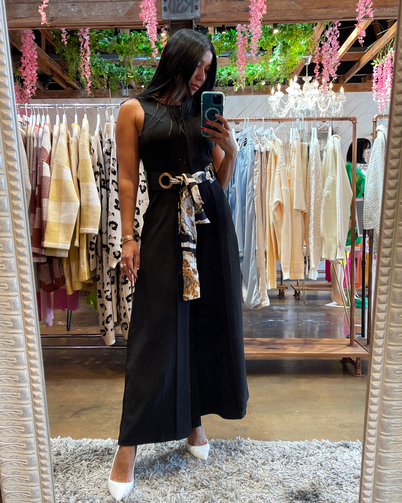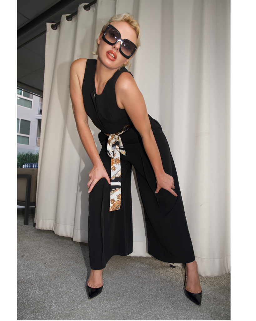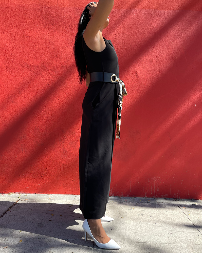The Azra Jumpsuit is a sophisticated and chic one-piece designed for the stylish woman. Crafted from high-quality fabric, it features a cinched waist belt that enhances your silhouette and accentuates your curves. The sleek, figure-hugging design is perfect for making a statement, whether you're heading to a professional event or a night out. This little black Azra Jumpsuit is an elegant choice that will ensure you stand out and make a memorable impression wherever you go.